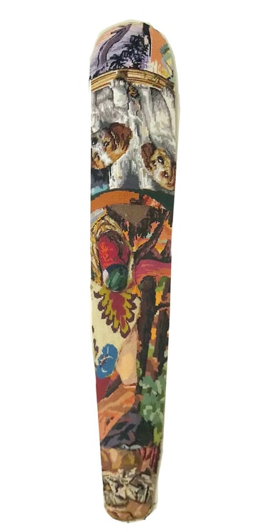 L'intention de la série "correspondances" (2019-2024) est de créer un dialogue avec les travaux de nos grand-mères et arrières-grands-mères. Issus de la proposition industrielle de leur époque, les canevas représentent une métonymie du XXème siècle. L'appropriation contemporaine se fait par le travail de la coupure qui permet la réinterprétation ainsi que la métaphore.